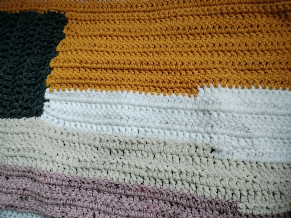 I opted for a non-linear reading, i.e. not to follow the sections with my music from one end of the bedspread to the other or to let the change of colors determine the course of the music. Instead, I tried to read the crochet blanket as a whole as an abstract portrait of Eszter Ivanova. This is how my thoughts on sound material began with the creation process of the crochet blanket, with the craftsmanship and motor activity involved. Translating crocheting into my own motor processes meant operating the keys of my flute and stroking small stones over the eardrum of a hand drum. Furthermore, it was clear from the beginning that the course of the piece of music had to be fragmentary, just as the crochet blanket with its irregular sections of different colored wool is characterized by the fragmentary. This gave a structure and atonal texture that should run through the whole piece. Everything else in terms of sounds and musical characters is the attempt to translate into music what I feel is sedimented in the crochet blanket, i.e. life history, everyday life, moods.