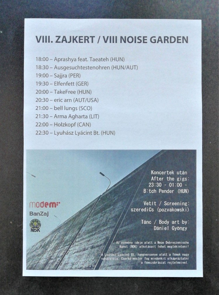 September 10-11: Zajkert/Noise Garden festival, MODEM, Debrecen: